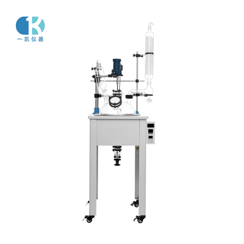 30L国产精品91视频內層放置反應溶媒可做攪拌反應,夾層通過冷熱源(冷凍液、水、導熱油)循環,可使內層實現恒溫加熱或冷卻反應,可控製反應溶媒的蒸餾與回流,容量為三十升小型玻璃反應器。